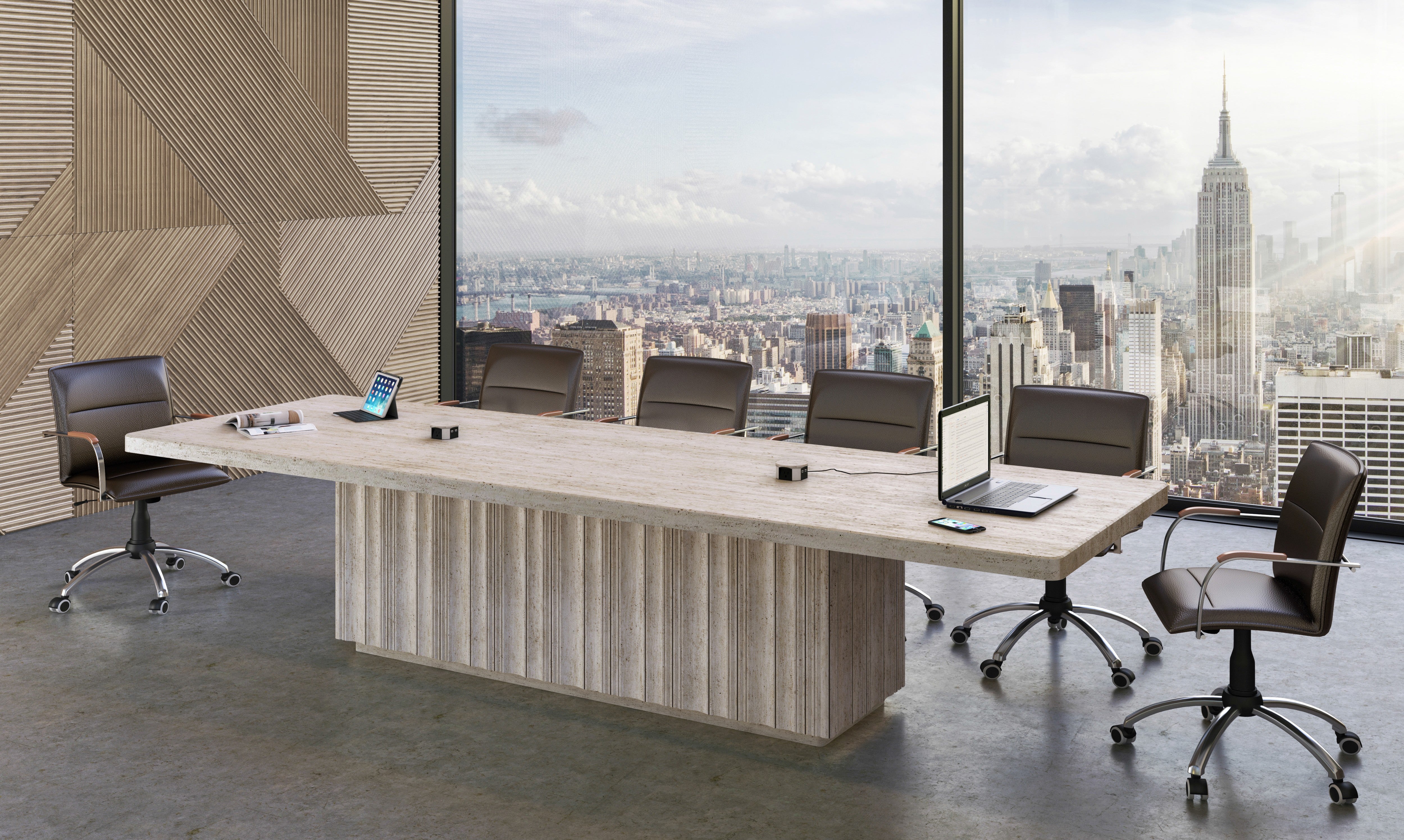 The Davani + Purity stone conference table is the perfect centerpiece to