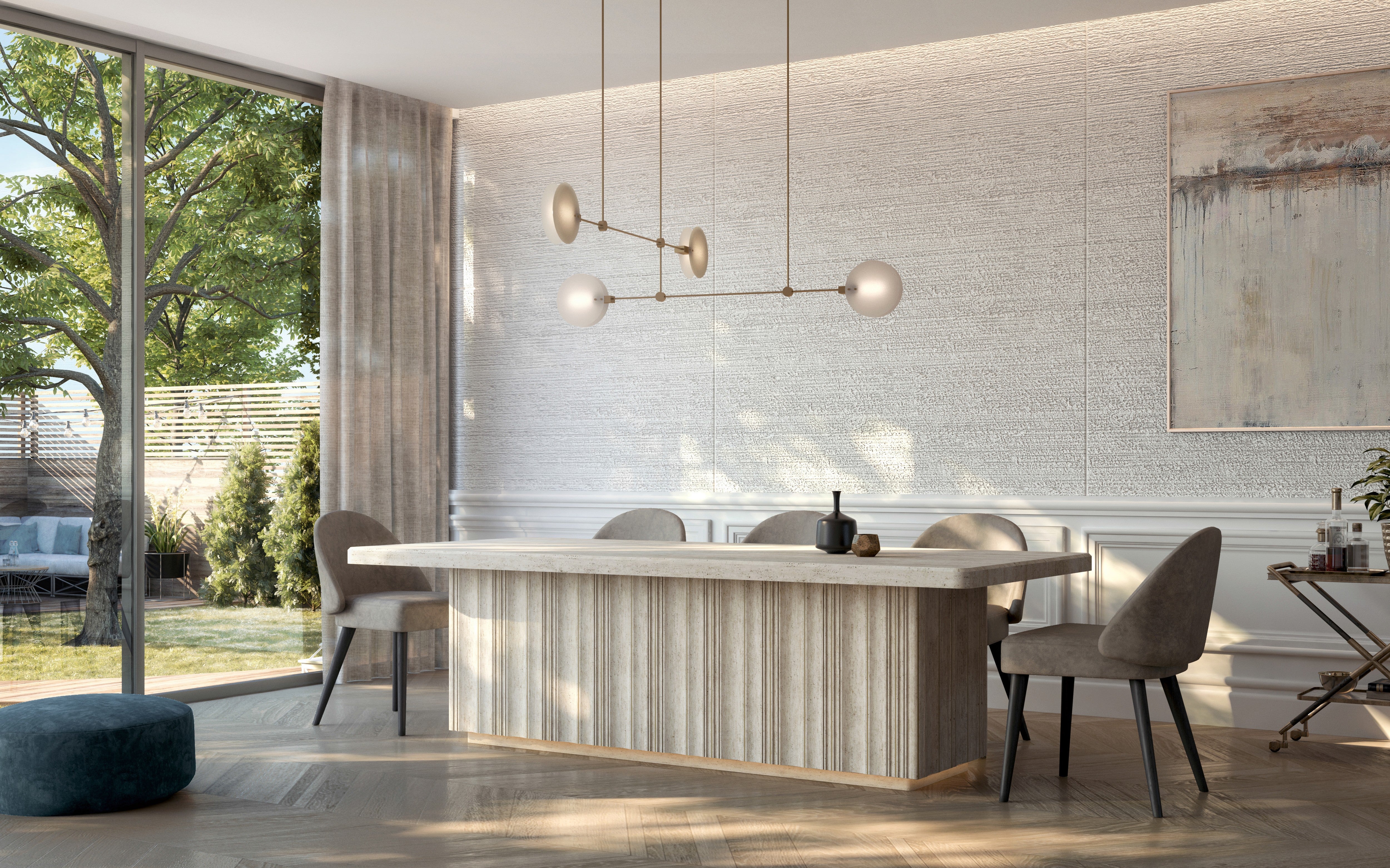 The anchor point of DAVANI + PURITY, this is the world’s first and only pure stone extendable dining table with a drop-in leaf that fits into a concealed storage compartment right inside the table.